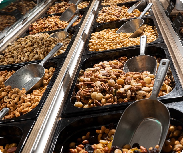 Onze noten zijn altijd vers. Of u nu van cashews, macadamia's, pinda's of amandelen houdt, Wij hebben het. Altijd vers gebrand op kwaliteit!